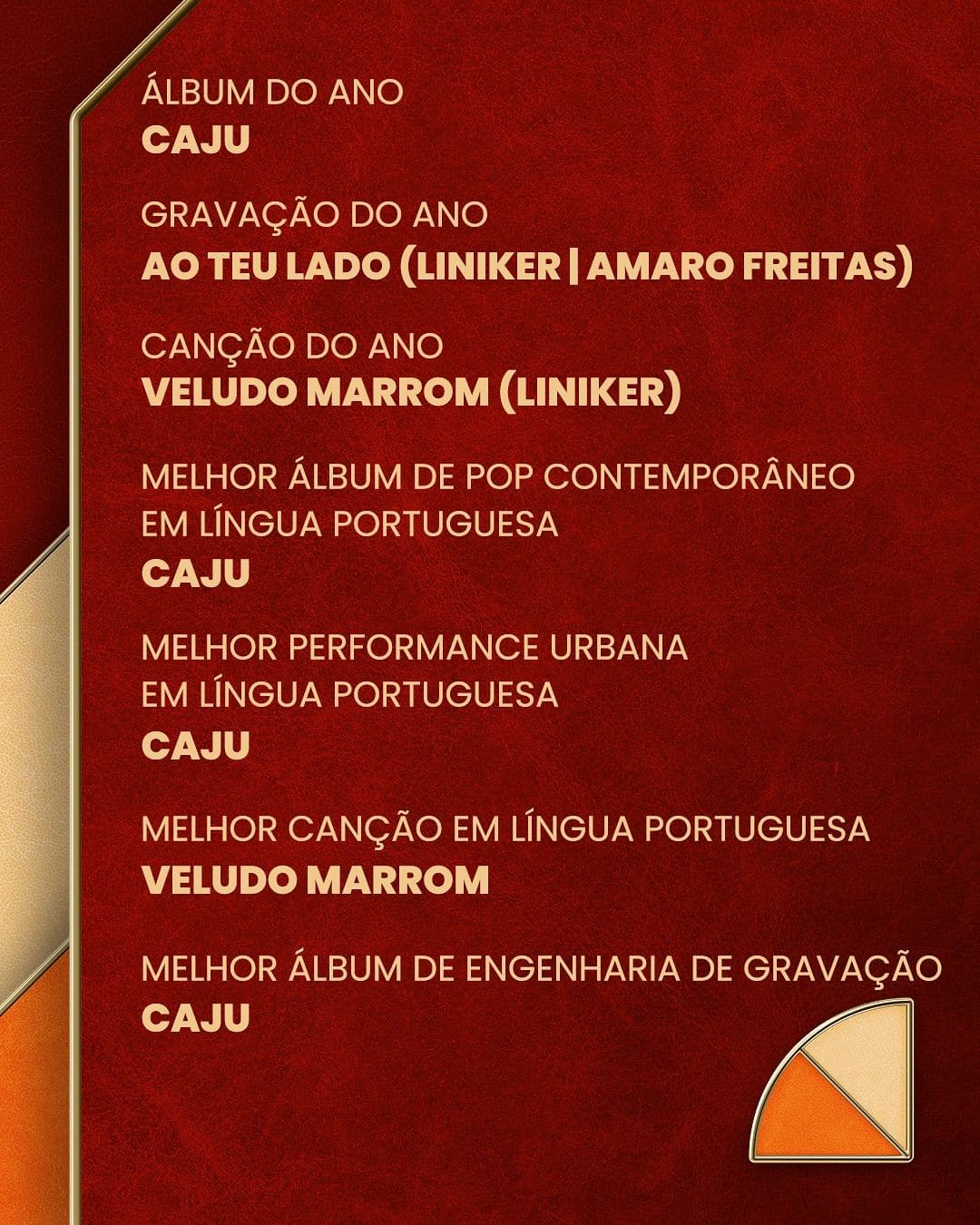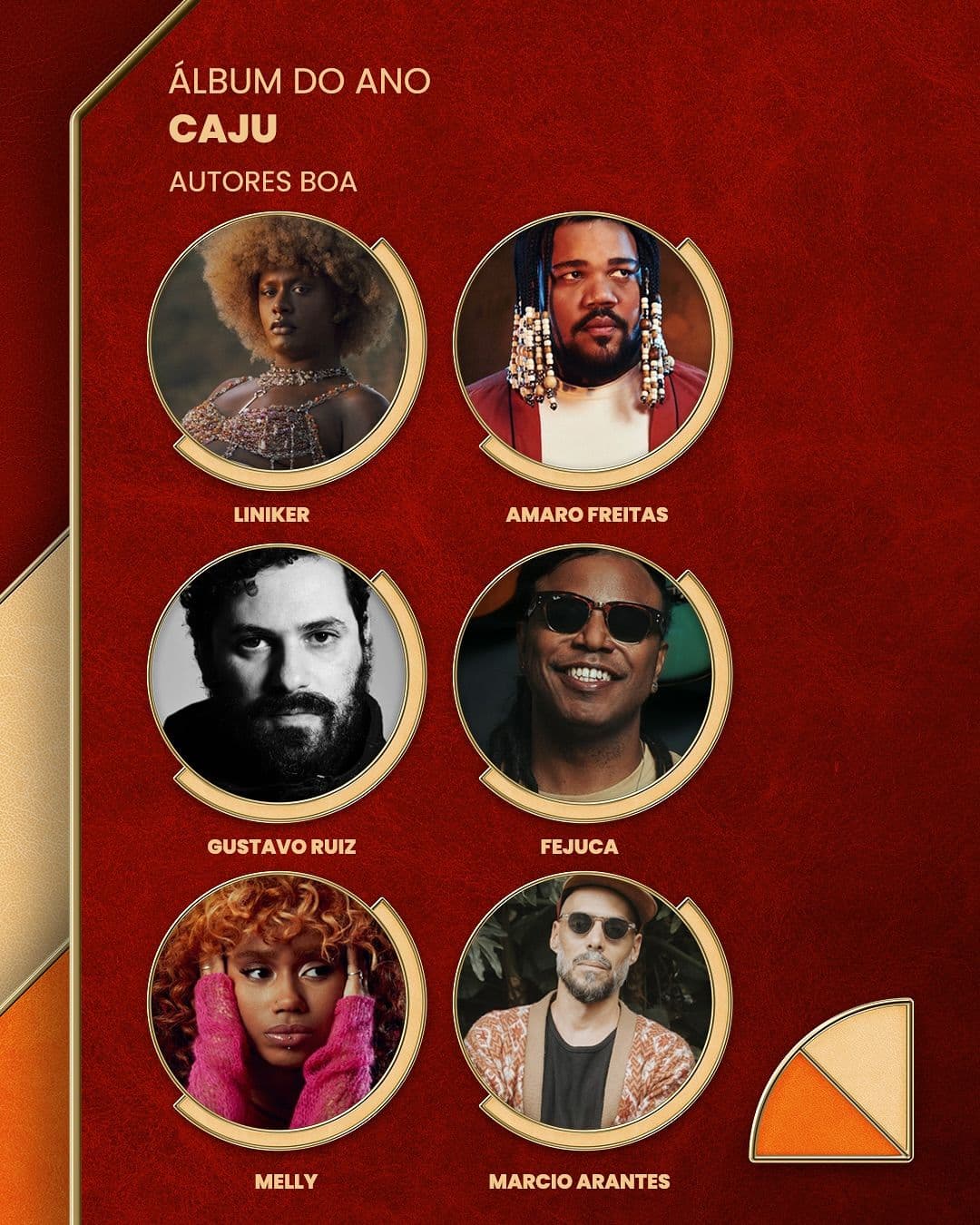 Destaca-se o excelente álbum “CAJU” da nossa Liniker, com seis indicações diretas, três delas em categorias principais, e outra para sua equipe de engenharia de som.